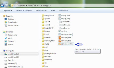4. Cari dan double klik file xampp-control.exe untuk membuka setting XAMPP