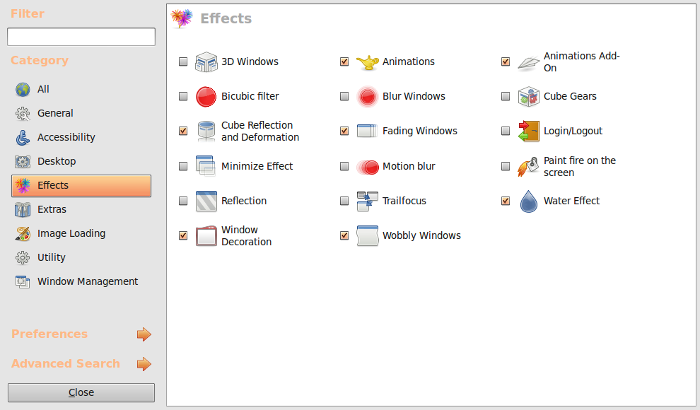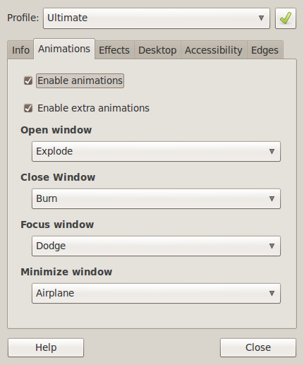 tunggu sampai installasi selesai, kemudian buka kembali Compizconfig Settings Manager, kemudian pilih tab ‘Effects’ nah aktifkan dech ‘Animation Add-On’ nya