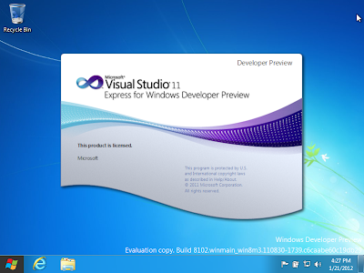 Di windows 8 ini merupakan dari OS yang dipersiapkan untuk developer, khususnya mereka developer Visual Studio, di dalam windows 8 ini tersedia menu untuk pemrograman Visual Studio yaitu Visual Studio 11 Express, berhubung ini windows preview jadi Visual Studio yang diberikannya pun yang versi Express,,hehe…
